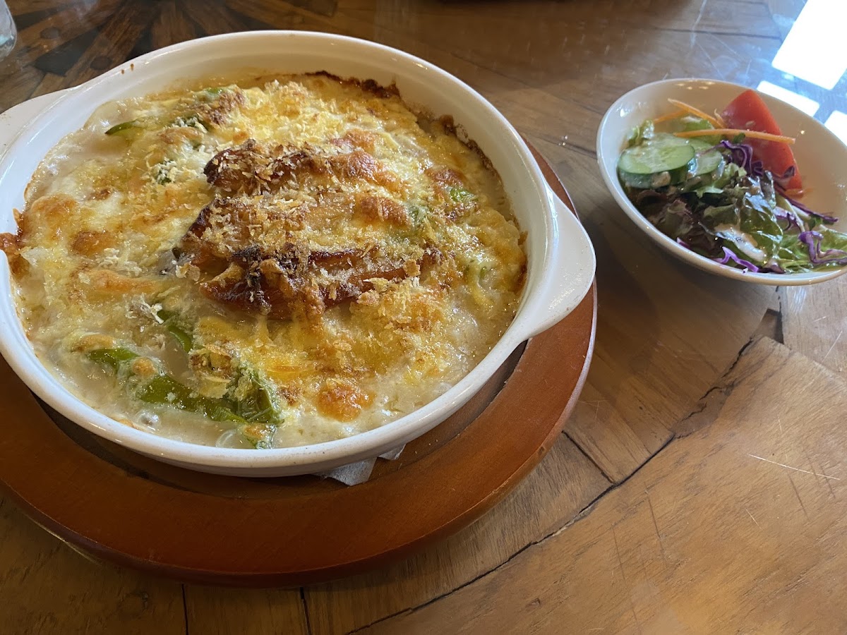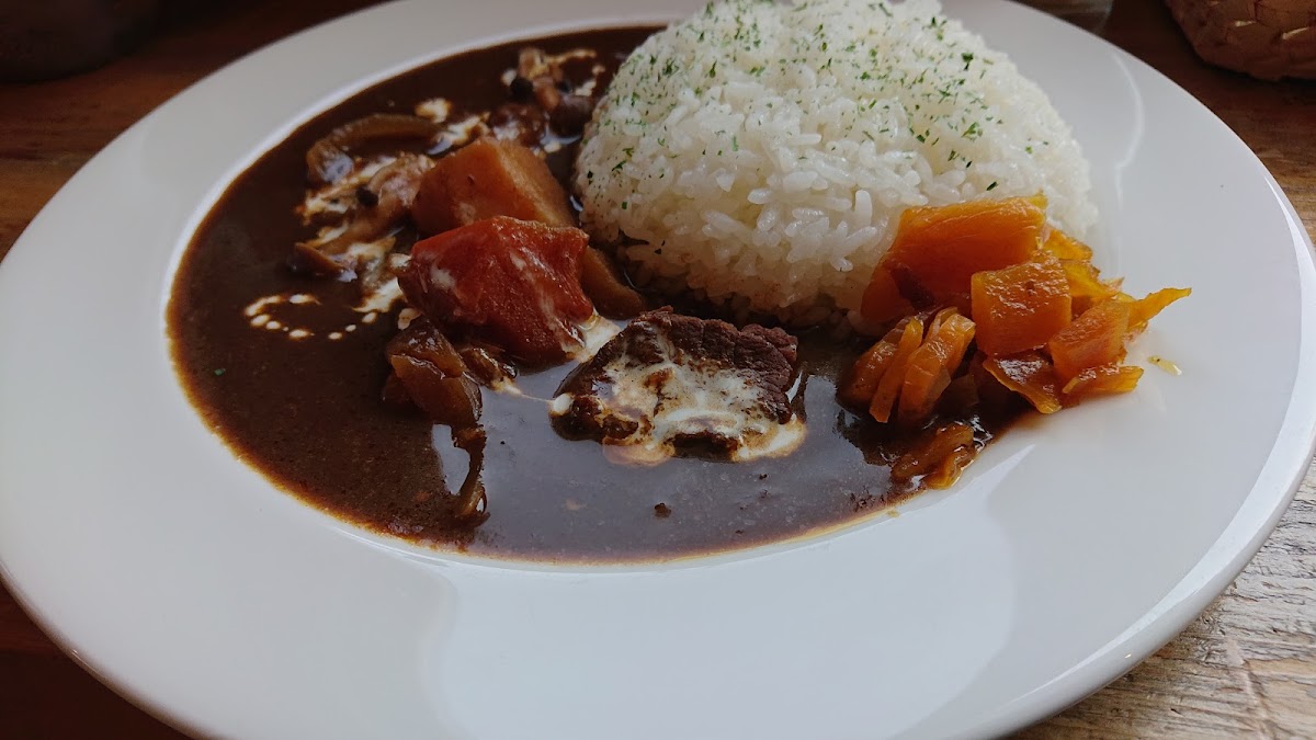 Rocky Max is renowned for its delightful menu that offers a selection of sumptuous dishes, including their highly praised Hamburg Curry and Seafood Doria. The curry, reminiscent of European flavors, strikes the ideal balance with its mild spiciness, while the Hamburg patty is expertly simmered to achieve a tender and flavorful texture. Both dishes come served with a decadent dessert and your choice of beverage, presenting a perfect dining experience.